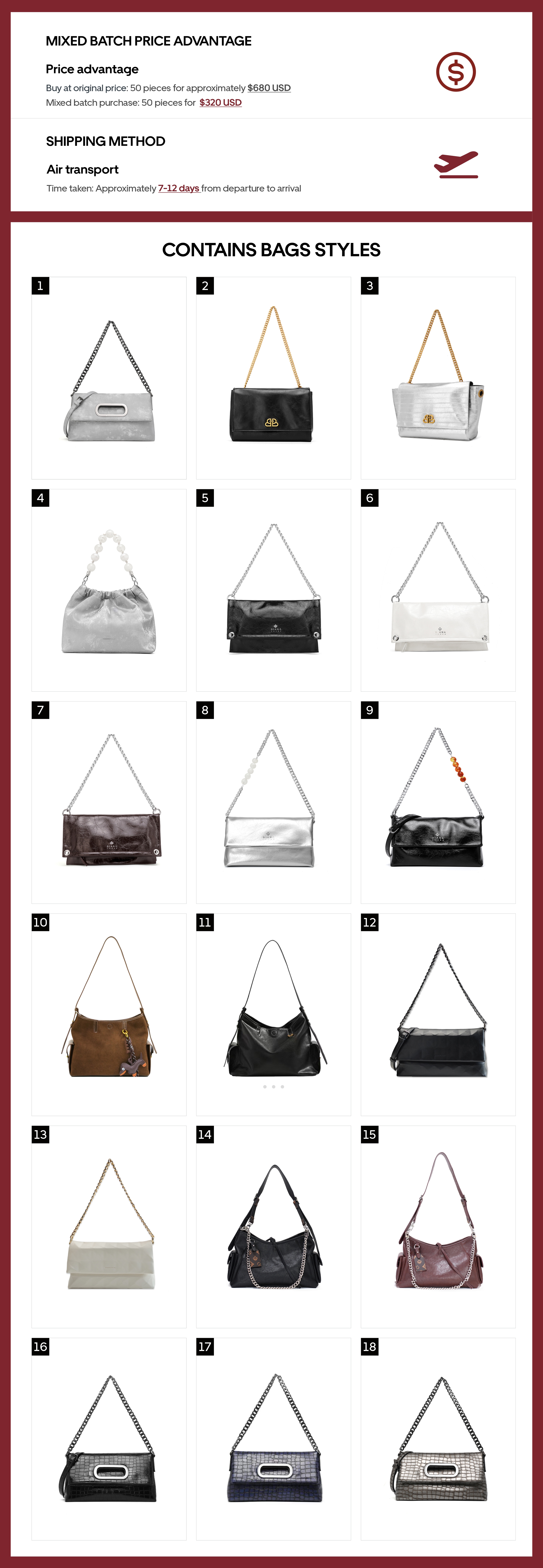 Mixed batch purchase: 50 pieces for  $320 USD